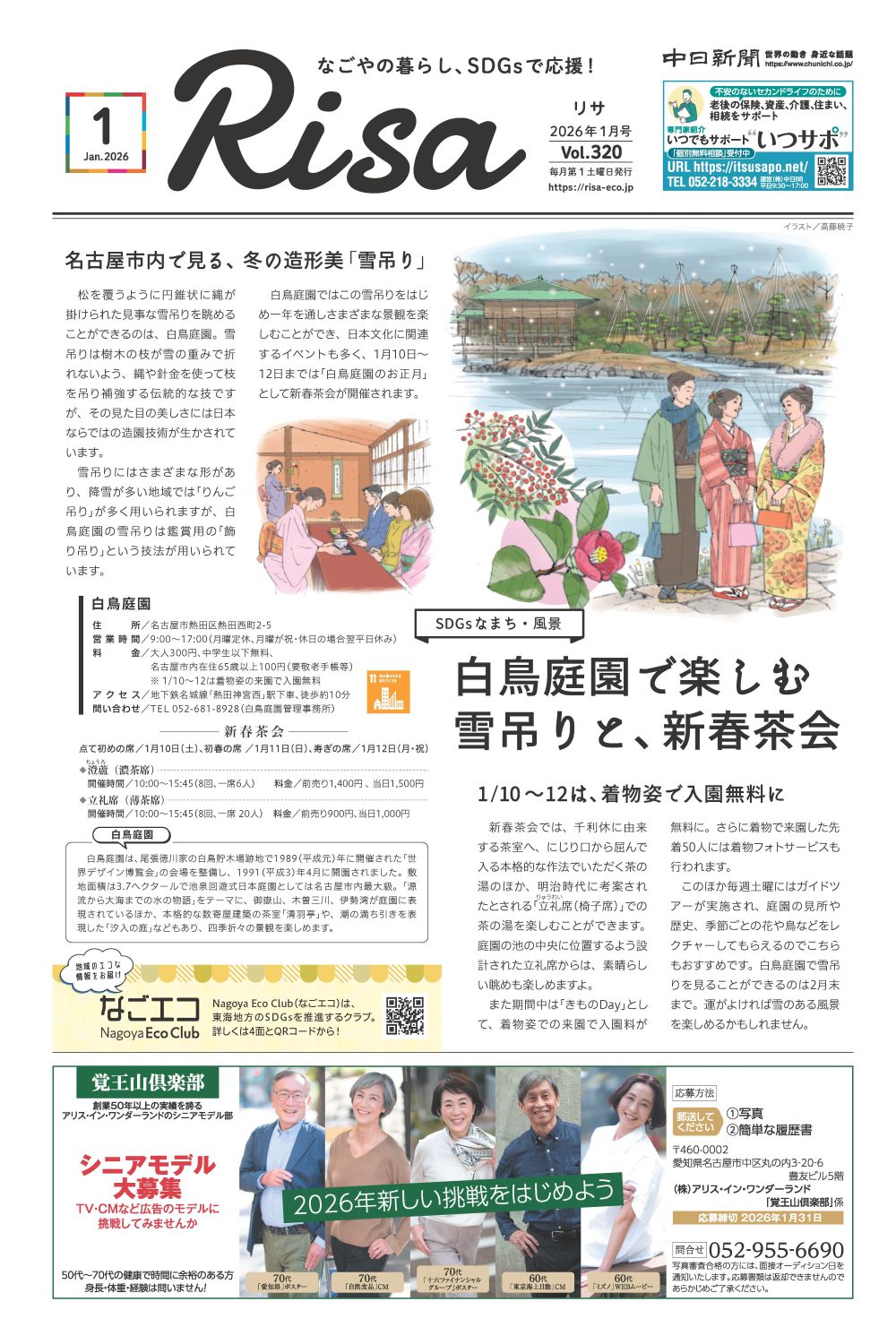 Risaは名古屋市内の中日新聞折り込みを中心に約37万部発行。名古屋市環境学習センター・エコパルなごや、なごや生物多様性センター、市内の図書館や愛知大学名古屋キャンパス、愛知淑徳大学コミュニティ・コラボレーションセンター(CCC)、豊田市の環境学習施設「eco-T(エコット)」などでもお手に取っていただけます。