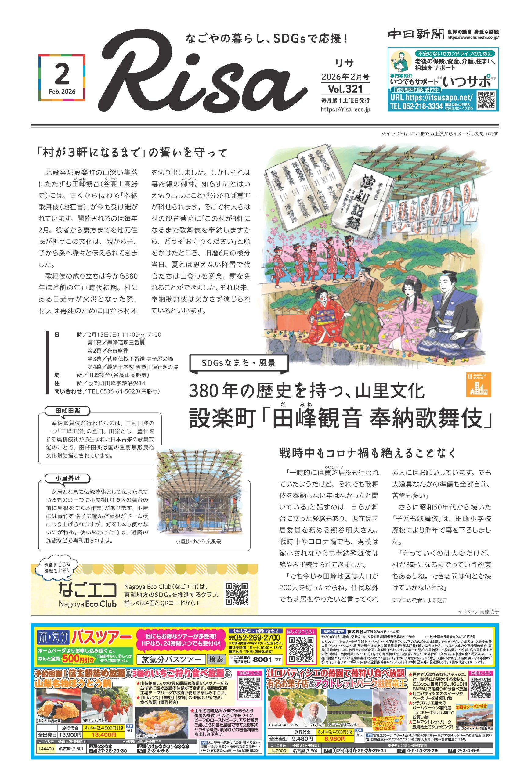 Risaは名古屋市内の中日新聞折り込みを中心に約37万部発行。名古屋市環境学習センター・エコパルなごや、なごや生物多様性センター、市内の図書館や愛知大学名古屋キャンパス、愛知淑徳大学コミュニティ・コラボレーションセンター(CCC)、豊田市の環境学習施設「eco-T(エコット)」などでもお手に取っていただけます。